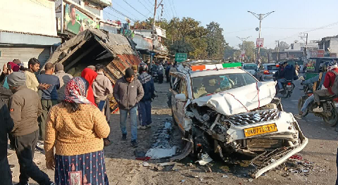 उत्तराखंड: राजधानी देहरादून में सड़क हादसे थमने का नाम नहीं ले रहे हैं। आये दिन कही न कही से हादसे की खबर सामने आ रही हैं। कोतवाली पटेल नगर क्षेत्र के अंतर्गत आज सुबह मोहब्बेवाला के पास खड़ी गाड़ियों में आशारोड़ी से आ रहे ट्रक ने टक्कर मार दी। जिसके बाद एक के बाद पांच गाड़ियों में टक्कर मार दी और ट्रक टक्कर मार दुकानों में घुस गया। टक्कर लगने से आ मोहब्बेवाला चौक के पास आशारोड़ी की ओर से आ रहे सीमेंट से भरे ट्रक ने पहले खड़ी एक कार को टक्कर मारी और फिर एक के बाद पांच वाहनों को नुकसान पहुँचाया। टक्कर के बाद ट्रक सड़क किनारे स्थित दुकानों में घुस गया और पलट गया, जिससे आसपास अफरा-तफरी मच गई। सूचना मिलते ही कोतवाली पटेल नगर पुलिस मौके पर पहुंची और राहत कार्य शुरू किया। घायलों को तुरंत अस्पताल भेजा गया। हादसे में डीजल टंकी फटने से डीजल लीक होने लगा, जिसे देखते हुए फायर स्टेशन को भी घटना की सूचना दी गई। पुलिस ने घटनास्थल को सील कर आगे की जांच शुरू कर दी है। मौके मौजूद लोगों ने बताया कि एक ट्रक मोहब्बेवाला के पास बैक हो रहा था, जिस कारण मोहब्बेवाला चौक पर अन्य छोटी गाड़ियां रुकी थी। उसी दौरान आशारोड़ी की तरफ से एक सीमेंट से भरा हुआ ट्रक आया और जाम में खड़ी 3 कार, ट्रक और एक ऑटो को टक्कर मार कर बुरी तरह क्षतिग्रस्त कर दिया और ट्रक मौके पर ही सड़क किनारे स्थित दुकानों में घुस गया और पलट गया।