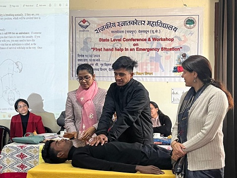 उत्तराखंड: राजकीय स्नातकोत्तर महाविद्यालय मालदेवता रायपुर देहरादून बीएससी गृह विज्ञान विभाग द्वारा “आपातकालीन परिस्थिति में प्राथमिक चिकित्सा सहायता एवं तम्बाकू निषेध” विषय पर दो दिवसीय संगोष्ठी एवं कार्यशाला का आयोजन किया गया। कार्यक्रम का उद्घाटन प्राचार्य प्रो. वंदना शर्मा के द्वारा दीप प्रज्वलित कर किया गया।